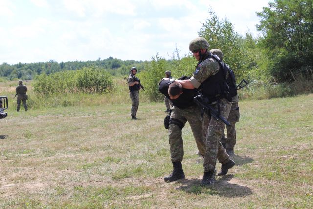 Cvičenia sa zúčastnili šiesti príslušníci Oddelenia krízového manažmentu a jeden psovod so služobným psom (príslušník Odboru policajného výkonu Prešov). Príslušníci VP pod velením mjr. Ing. Ivana MOKROHAJSKÉHO si precvičili súčinnosť s OSSR pri plnení úloh odsunu osôb zaistených v priestore obrany 22. mpr.