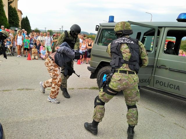 Ukážky predstavili činnosť vojenského policajta pri vykonávaní služobných zákrokov s použitím donucovacích prostriedkov – pút a teleskopického obušku, zaistenie nebezpečného páchateľa a ochrana dôležitých osôb. Bola vykonaná aj statická ukážka výzbroje a techniky používanej príslušníkmi Vojenskej polície. Návštevníkom boli predstavené zbrane ako odstreľovacia puška 12,7; pištol Glock 17, granátomet, AW 50 a samopal HK UMP.