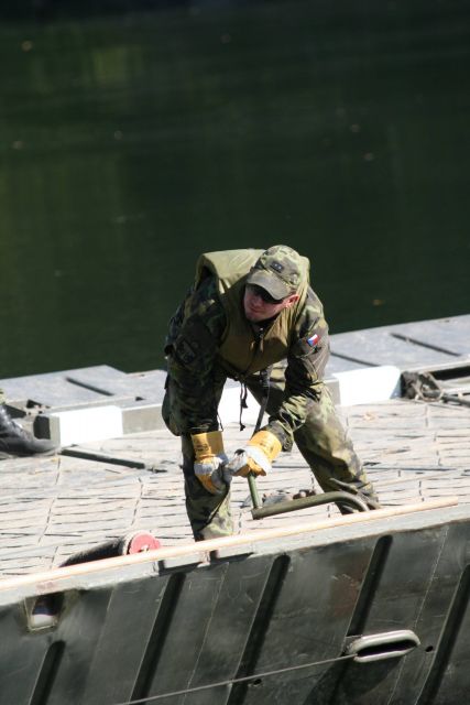 Pre veliteľa pontónovej čaty 51. ženijného práporu Bechyně poručíka Miroslava Lacinu je cvičenie prvou príležitosťou spoločného výcviku so slovenskými kolegami. “Spoločný výcvik je veľmi dobrý na vzájomné stmelenie jednotiek armád NATO, aby vedeli v prípade potreby spoločne a efektívne zasiahnuť, plniť úlohy. Je to pre nás veľká príležitosť precvičiť si plnenie úloh v inom prostredí. Nie v domácom, ktoré dobre poznáme. Rieka Váh je predsa len väčší vodný tok s pomerne silným prúdom, ako máme doma na cvičisku. To samozrejme kladie zvýšené nároky na všetkých pri stavbe mostového prepraviska i prievozového prepraviska, podarilo sa nám vytvoriť veľmi dobre fungujúce zmiešané kolektívy,“ pochvaľuje si poručík Lacina. Nešetrí slovami chvály na svojho vedúceho práporčíka nadrotmajstra Pavla Křivohlavého, člnára čatára Aleša Bíleka a vodiča slobodníka Miroslava Šusteka.