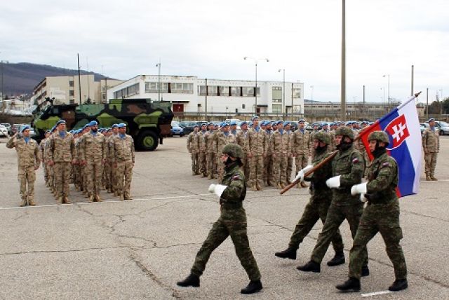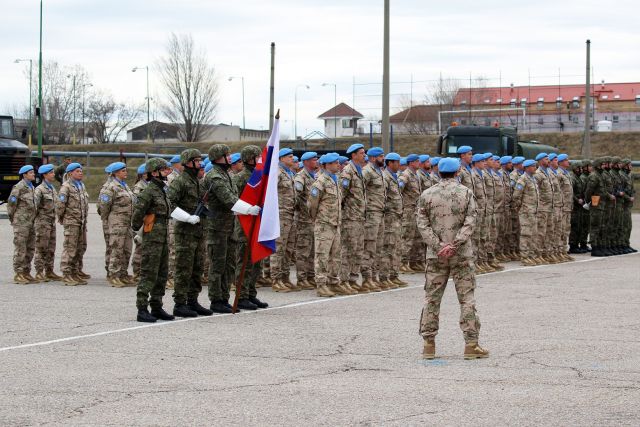 Odnesením štátnej zástavy bol slávnostný nástup ukončený. Rotujúci vojaci vystriedajú svojich kolegov, ktorých privítanie sa uskutoční 22. marca 2019.