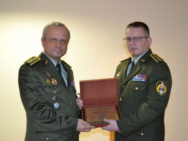 Zastupujúci veliteľ odovzdal pozvaným hosťom ako poďakovanie za spoluprácu pamätnú plaketu veliteľa Úradu logistického zabezpečenia OS SR.