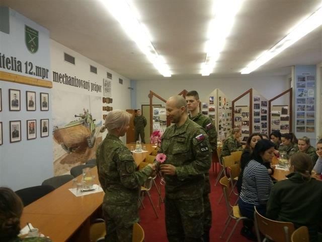 Pri tejto príležitosti pripravil zástupca veliteľa práporu major Ivan Petrik pre všetky profesionálne vojačky a zamestnankyne slávnostné posedenie. V krátkom príhovore vyjadril slová vďaky ženám za ich odvedenú prácu v prospech práporu a ozbrojených síl. Ako vďaku úcty venoval každej z nich kvet, ktorý reprezentuje krásu a zraniteľnosť zároveň. Bolo to symbolickým vyjadrením skutočnosti, že ženy skrášľujú a zjemňujú vojenské prostredie. Vojačka s kvetom v ruke je výstižným symbolom - neprestáva byť ženou a zároveň uniforma, ktorú má na sebe, svedčí o jej zvláštnom poslaní.