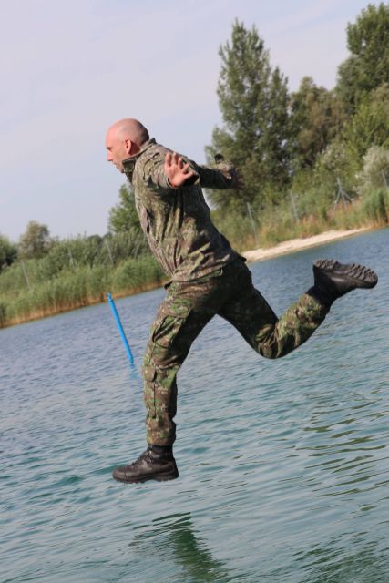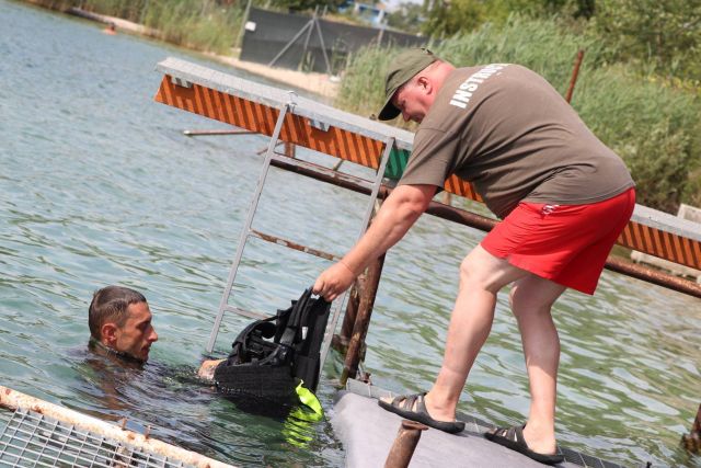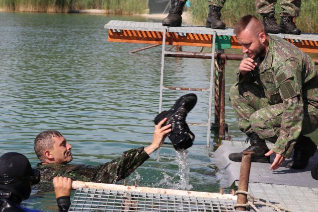 „ Vojak sa môže dostať do vody pri páde z člna s plným výstrojom a výzbrojou a záchranná vesta nemusí z rôznych príčin fungovať. Má na sebe výstroj a výzbroj vážiacu vyše 20 kilogramov a vlastne začína boj o holý život. Preto sa musí vedieť pod vodnou hladinou postupne zbaviť všetkej záťaže. Teda nepriestrelnej vesty, zbraní, zásobníkov, prilby. Aj vlastnej uniformy, ktorá vo vode veľmi rýchlo nasiakne a ťahá ho pod vodu. V prvom rade musí prekonať určitý stres a urobiť všetko pre svoju záchranu. Preto takto zameraný kurz, aby mal nacvičené postupy. Musí pri tom využiť aj malú záložnú fľašu, ktorú má každý príslušník tímu na lodi. Pri normálnom dýchaní mu vydrží asi 10 minút, pri strese a panike vo vode možno len jednu- dve minúty. Za ten čas preto musí zo seba dať všetko najťažšie, čo má,“ približuje jednu cvičebnú úlohu kurzu kapitán Urban. Nadrotmajster Štefan Tršo zo skupiny krízového manažmentu Vlkanová má za sebou skúsenosť z pôsobenia z operácie SOPHIA, kde bol v druhej rotácii zástupcom veliteľa slovenského kontingentu. Oceňuje výcvik na Guláške, ktorý mu pomohol osviežiť si skúsenosti z prípravy v Nemecku. Rotný Miloš Halecký zo skupiny krízového manažmentu Prešov zatiaľ v operácii v Stredozemnom mori nebol „Je to výborná pomôcka, ako odbúrať stres v krízových situáciách, otestovať sa, ako si pomôcť v takýchto situáciách. Aj taká na pohľad banalita, ako je odopnutie gombíka na rukáve uniformy vás v konečnom dôsledku môže pripraviť o život. Pokiaľ vám to bude trvať veľmi dlho, vzduch vo fľaši sa minie a pomoc ešte bude ďaleko.“