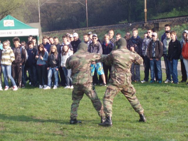 Aktivita sa konala v peknom prostredí na brehu rieky Hornád. Začínalo sa ráno o ôsmej úvodným slovom kpt. Ing. Mareka PAVLOVA. Razantnosť úvodu charakterizovala aj ukážka sebaobrany príslušníkov prieskumnej roty z Rožňavy. Celé dopoludnie sa nieslo v znamení nových poznatkov a skúseností. Študenti mali k dispozícií šesť stanovíšť s rôznou technikou a ukážkami. Boli to ukážky zbraní, kde bolo skladanie a rozoberanie samopalu. Dobrovoľníci si dokonca mohli vyskúšať aj streľbu zo samopalu. Určiť svetové strany bez kompasu, alebo azimut sa mohli naučiť na stanovišti č. 2. Ďalšou zaujímavou vecou bola umelá figurína, na ktorej sa dala vyskúšať technika masáže srdca s teoretickým vysvetlením ako postupovať pri poskytnutí prvej pomoci ranenému. Chemická časť bola aj kvôli rozsahu rozdelená na dve časti. V prvej sa študenti dozvedeli aké nebezpečenstvá hrozia pri chemickom útoku. Mohli si vyskúšať plynovú masku a návlek. V druhej časti im boli predvedené prístroje na meranie nebezpečných látok v ovzduší a voľnú kabínu ponúkalo aj špeciálne prieskumné transportné vozidlo BRMD – 2RCH. Poslednou zastávkou bola sebaobrana a možnosť naučiť sa niekoľko zaujímavých hmatov a chvatov sebaobrany.
