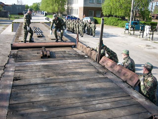 Výcvik vojsk v preprave po železnici V súlade so „Smernicou pre prípravu ženijného práporu pozemných síl Ozbrojených síl SR vo výcvikovom roku 2010“ a na základe Plánu prípravy na VR 2010 bol v dňoch 27. 04.2010 (teoretická časť) a 28.04.2010 (praktická časť) vykonaný výcvik vojsk v preprave po železnici v priestore VÚ 1049 Sereď a na železničnej stanici Sereď. Praktického výcviku sa zúčastnili všetci príslušníci žpr vrátane štábu a logistiky. Praktický výcvik vojsk v preprave po železnici pozostával z dvoch častí. V prvej časti boli príslušníci žpr oboznámený s praktickými ukážkami, a to: