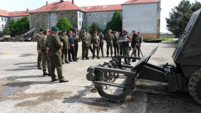 Návšteva od rieky Moravy Vo štvrtok 6. mája privítal ženijný prápor pozemných v Seredi vo svojich priestoroch návštevu príslušníkov armády Českej republiky vedenú plk. Jindřichom HACKELOM. Po privítaní hostí náčelníkom štábu mjr. Jozefom HAŇOM nasledovala prezentácia útvaru, v ktorej sa hostia z Českej republiky oboznámili s činnosťou, hlavnými úlohami, organizačnou štruktúrou a prioritami ženijného práporu. Program návštevy pokračoval statickou ukážkou hlavných druhov techniky práporu, dynamickou ukážkou odmínovacieho kompletu BOŽENA III., mostného automobilu AM 50 a praktickou ukážkou výcviku zo streleckej prípravy. Potom nasledovala ukážka učebnej výcvikovej základne v rámci ktorej si hostia prezreli učebňu prieskumného potápačského družstva. Na záver návštevy nasledovalo krátke oboznámenie s históriou útvaru v sieni cti a tradícií ženijného práporu, kde náčelník štábu mjr. Jozef HAŇO odovzdal pamätné predmety vedúcemu delegácie plk. Jindřichovi HACKELOVI. Celé stretnutie sa uskutočnilo v priateľskej atmosfére a potvrdilo dlhodobo nadštandardné vzťahy medzi oboma krajinami a ich ozbrojenými silami.