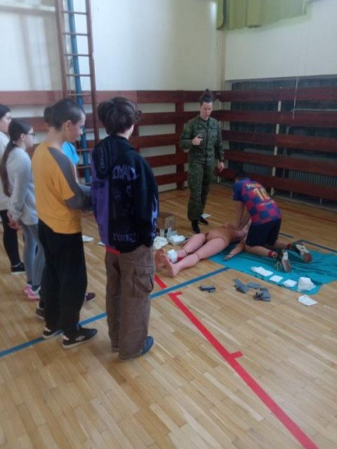 Podpora aktivity „Príprava obyvateľstva na obranu štátu“ na základnej škole Dňa 16. marca 2023 sa profesionálni vojaci 4. pluku logistiky podieľali na aktivite organizovanej sekciou ľudských zdrojov Ministerstva obrany Slovenskej republiky. Aktivita vyplýva z Koncepcie prípravy obyvateľstva na obranu štátu (ďalej PONOŠ), ktorá nadväzuje na učebné osnovy v základných školách v rámci predmetu Ochrany človeka a zdravia. Aktivita sa uskutočnila v priestoroch Základnej školy v Trenčianskej Teplej a bola organizovaná pre žiakov 6. a 7. ročníka II. stupňa. V rámci aktivity pripravili profesionálni vojaci 4.plog a Veliteľstva síl pre špeciálne operácie pre žiakov pracoviská, kde profesionálni vojaci v roli „učiteľov“ „odučili“ tematiku zameranú na učebné osnovy. Profesionálni vojaci 4.plog v rámci aktivity pripravili pracovisko zo zdravotníckej prípravy, na ktorom si žiaci vyskúšali poskytnutie prvej pomoci pri krvácaní a zástave srdcovej činnosti. Na ďalšom pracovisku organizovanom 4.plog sa žiaci naučili ako sa zachovať v prípade nálezu nebezpečného výbušného materiálu, súčasťou pracoviska bola aj hra smerovaná k tímovej spolupráci v prípade vyslobodenia skupiny z ohrozeného priestoru. Na poslednom pracovisku - podpornom organizovanom 4.plog bolo žiakom predvedené správne maskovanie odkrytých častí tela maskovacími farbami, techniku maskovania si žiaci mohli vyskúšať aj na svojich spolužiakov.