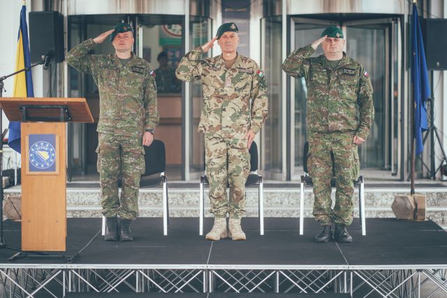 Odovzdávanie funkcií 30. rotácie V priestore kempu Butmir v Sarajeve sa 24. apríla konalo odovzdávanie funkcií 30. rotácie. Odovzdávania sa zúčastnil aj veľvyslanec Roman Hlobeň, ktorý sa príslušníkom ozbrojených síl poďakoval za ich prácu v rámci operácie EUFOR ALTHEA. Následne im veliteľ SLOVCON podplukovník Ľubomír Mizerák odovzdal pamätné mince a plakety. V rámci nej sa vymenila časť novej rotácie príslušníkov ozbrojených síl Slovenskej republiky, ale aj velitelia Slovenského kontingentu (SLOVCON). Podplukovníka Ľubomíra Mizeráka vystriedal na funkcii podplukovník Jozef Durkot. Bývalý veliteľ SLOVCON podplukovník Mizerák vo svojej záverečnej správe zrekapituloval, pôsobenie slovenských vojakov v operácii EUFOR. „Rozmanitosť funkčných oblastí príslušníkov SLOVCON, zaradenie do rôznych jednotiek, oddelení a štruktúr v rámci operácie EUFOR ALTHEA v Bosne a Hercegovine si vyžaduje individuálne odborné, osobnostné, jazykové, líderske a zároveň z časti diplomatické schopnosti a spôsobilosť aplikovať ich do reálneho vykonania stanovených úloh. Dôkazom sú moje vlastné pozorovania počas 8. mesačného nasadenia v pozícii veliteľa kontingentu a predovšetkým vo funkcii náčelníka LCC,“ uviedol bývalý veliteľ SLOVCONU. Ako ďalej uviedol, dosiahnuť operačnú funkčnú a efektívnu kohéziu pri riadení podriadených prvkov z 9 národov je obrovskou výzvou. Nový veliteľ SLOVCON sa s touto výzvou stotožnil a bude v nej naďalej pokračovať. „Mojím cieľom je udržať úroveň operačných úloh a pokračovať v nastavenom smere predchádzajúceho veliteľa,“ uzavrel veliteľ SLOVCON podplukovník Jozef Durkot