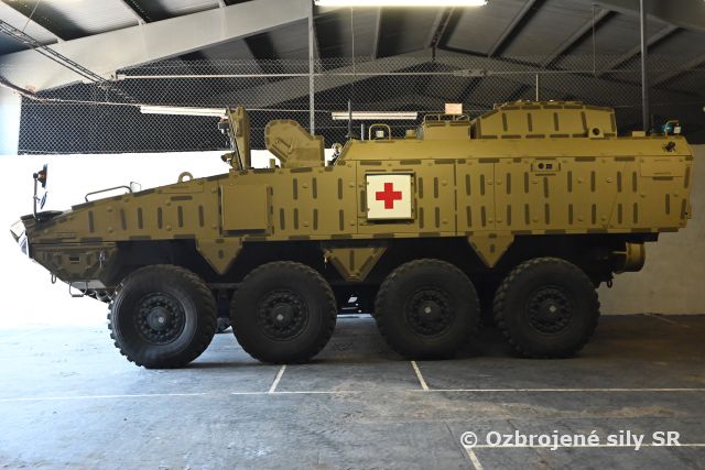 Vôbec prvé Bojové obrnené vozidlo 8x8 (BOV 8x8) Patria, dodané Ozbrojeným silám SR, je v zdravotníckej verzii a bolo prevzaté Veliteľstvom vojenského zdravotníctva. Toto obrnené sanitné vozidlo je určené pre transport a poskytovanie neodkladnej zdravotnej starostlivosti pre troch až piatich pacientov a to i v prostredí zasiahnutom chemickými alebo biologickými bojovými látkami.
