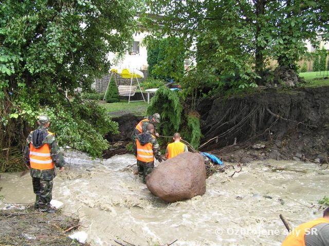 Počet vojakov pri odstraňovaní následkov prívalovej vlny na Hornej Nitre sa dnes zvýšil na 124. Vojaci sa striedajú po dvanástich hodinách, doteraz sa ich v handlovej vystriedalo 448. Úlohou vojakov je čistenie koryta potoka Handlovka a ulíc Handlovej od nánosov z prívalovej vlny. V Handlovej sú takmer v nepretržitej prevádzke uvoľňovacie automobily so žeriavom, kolesový nakladač a automobilové kolesové rýpadlo UDS. Sereďskí ženisti odstraňujú naplavené drevo pomocou motorových píl.