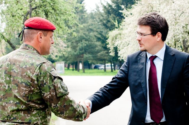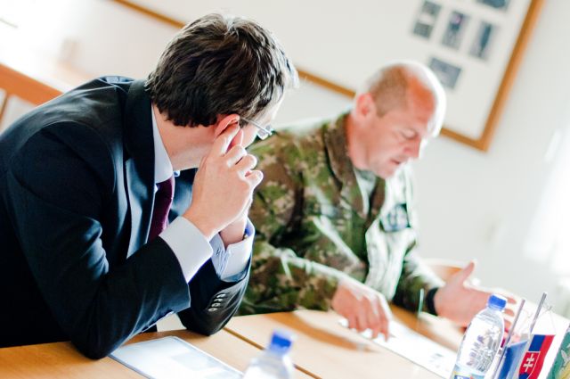 Štátneho tajomníka počas návštevy špeciálnych síl v Žiline sprevádzal Vladimír Tarasovič, riaditeľ Kancelárie štátneho tajomníka MO SR.