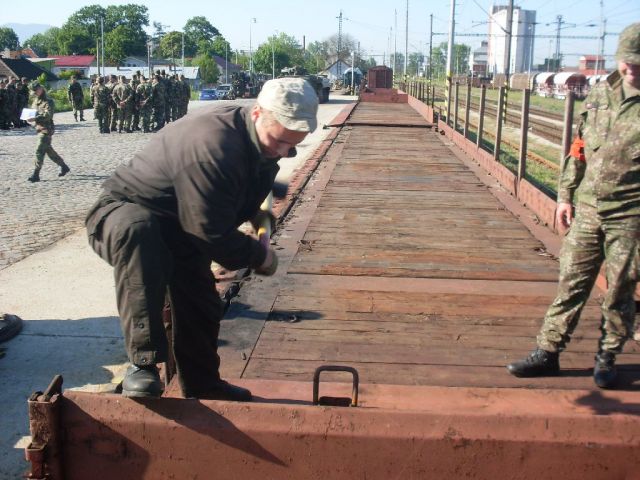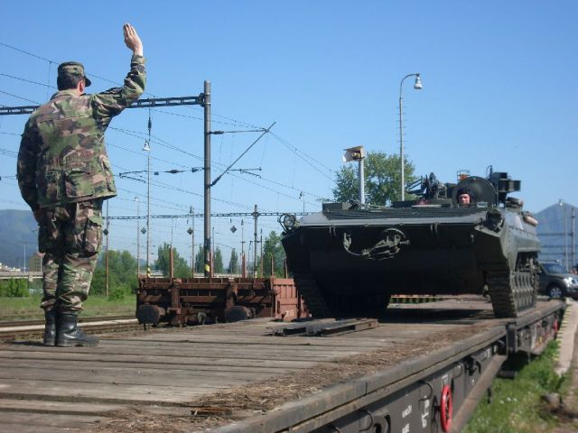 - Výcvik vodičov a veliteľov vozidiel pri pohybe techniky na železničných vozňoch, zásady navádzania techniky,