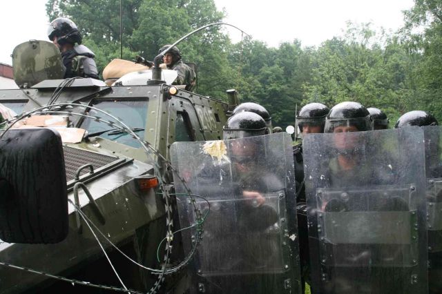Ochrana tábora privolala špeciálnu zásahovú jednotku a až s jej pomocou sa jej podarilo po určitom čase zvládnuť situáciu a postupne vytlačiť útočníkov z priestoru brány. Využili pri ňom aj možnosti obrneného vozidla Aligator pri potláčaní davu.