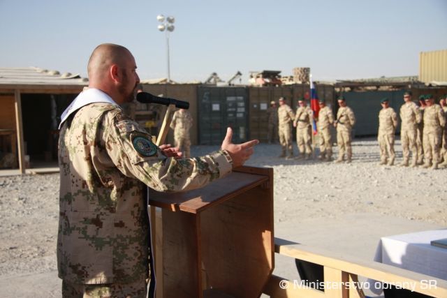 Veliteľ skupiny metodickej pomoci z Generálneho štábu OS SR plukovník Peter Fajmon sa prihovoril príslušníkom odchádzajúcej 15. rotácie. V mene náčelníka generálneho štábu poďakoval všetkým, ktorí sa podieľali na výbornom splnení úloh počas polročného pôsobenia v Afganistane. Vojakom poďakoval aj odchádzajúci veliteľ kontingentu podplukovník Petr Švrlo, ktorý ocenil snahu a hlavne výkon každého jedného príslušníka kontingentu. Švrlo odovzdal slovo aj podplukovníkovi Štefanovi Acsaiovi, ktorý ako nový veliteľ SLOVCON-u (slovenského kontingentu) vyslovil presvedčenie, že 16. rotácia urobí všetko pre to, aby dobré meno, ktoré predchádzajúce rotácie Slovenskej republike v Afganistane urobili, naďalej svojimi výkonmi udržalo.