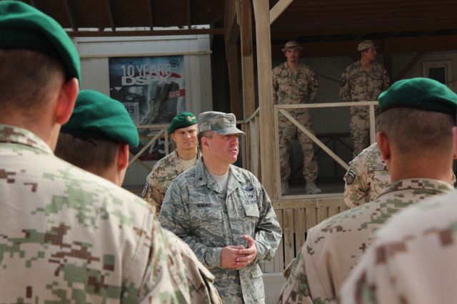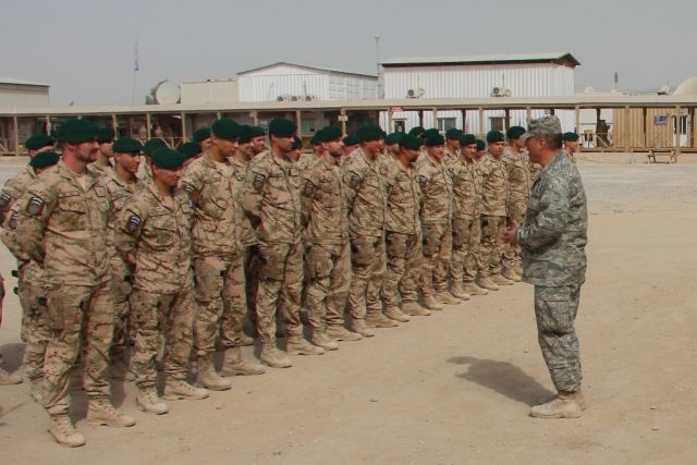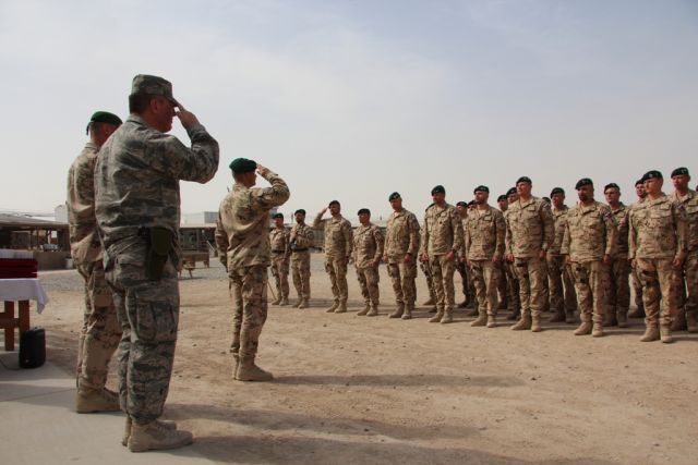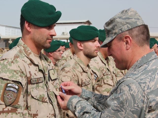 V dopoludňajších hodinách nastúpili vojaci strážnej jednotky z marcovej rotácie, ktorí sa vrátia na Slovensko v septembri tohto roka, aby si prevzali medaily NATO Non-Article-5 za službu NATO v operácii ISAF. Medaily vojakom osobne odovzdal veliteľ základne KAF Kandahár americký brigádny generál Jeffrey Kendall, ktorý vo svojom príhovore vojakom zdôraznil dôležitosť príspevku každej krajiny v rámci koaličných síl operujúcich v Afganistane. „Vaša profesionalita pri zabezpečovaní bezpečnosti na vstupe ECP-5 do základne na mňa urobila obrovský dojem. Musím povedať, že za vašu nebezpečnú prácu v prospech bezpečnosti všetkých, ktorí sú na základni, si zaslúžite uznanie,“ povedal Kendall. „Verím, že pri návrate domov vás ľudia privítajú ako ozajstných hrdinov, lebo nimi naozaj ste,“ zdôraznil na záver. Veliteľ slovenského kontingentu pri tejto príležitosti odovzdal vojakom aj medaily Vojnový veterán.