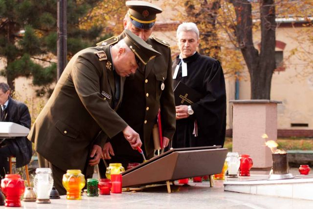 „Verím, že napriek počiatočnému smútku a bôľu, ktorý cítime, postupne sa nám vynárajú obrazy všetkých tých krásnych chvíľ, ktoré sme s nimi zažili,“ povedal na zhromaždení v areáli Pamätníka zmierenia na ministerstve obrany Ľ. Galko. Dodal: Spomeňme si na tomto mieste na všetkých vojakov, ktorí službe vlasti priniesli tú najväčšiu obeť – a ktorí sa nevrátili k svojim rodičom, manželkám a deťom, k priateľom. Súcítime s ich stratou. Česť ich pamiatke.“ Pri Pamätník zmierenia, kde sú uložené prste zeme z bojísk, kde padli slovenskí vojaci, následne Ľ Galko a Ľ Bulík zapálili sviece. Spomienkové ekumenické modlitby predniesli vojenskí duchovní plukovníci František Počurek a Jaroslav Balocký.
