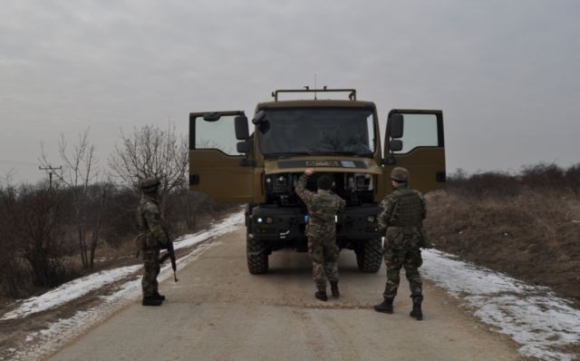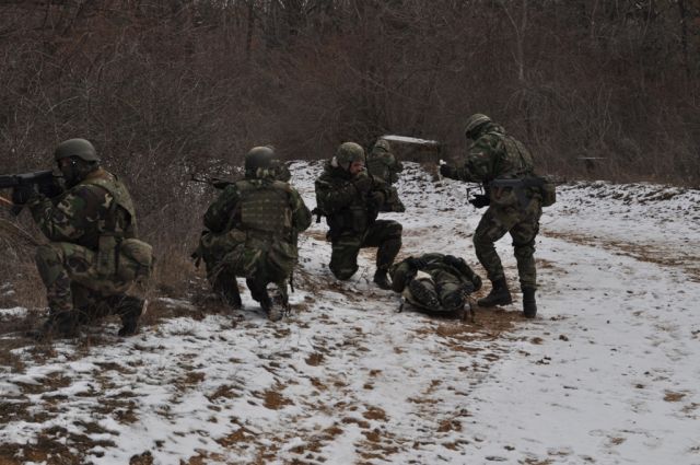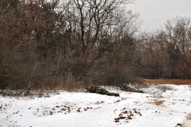 Príslušníci z 12. mechanizovaného práporu v Nitre, ktorí sa pripravujú na plnenie úloh  NRF 2013 - NATO Response Force - Sily rýchlej reakcie v priestoroch Kolíňanského Vrchu 14. februára 2012 absolvovali taktickú prípravu - protipovstalecké operácie, takticko odbornú prípravu - čata počas boja a zdravotnícku prípravu - vyslobodzovanie ranených z techniky.
