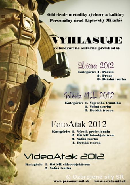 Personálny úrad Liptovský Mikuláš cestou Oddelenia metodiky výchovy a kultúry aj v tomto roku vyhlasuje celorezortné súťažné prehliadky (CSP) – FotoAtak, Litera, VideoAtak a Galéria MIL.