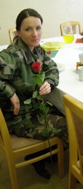 Rovnako zostal verný tejto tradícii i zastupujúci veliteľ 13. mechanizovaného práporu major Andrej TVRDOŇ. Profesionálne vojačky a civilné zamestnankyne privítal v priestoroch jedálni, kde ich pohostil na slávnostnom obede. Každá zo žien si uctil červenou ružou. Vojačka s kvetom v ruke je výstižným symbolom rovnoprávnosti pohlaví.