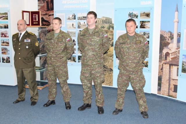 Ocenenie za výnimočne kvalitné plnenie úloh v rámci pôsobenia v operácii ISAF Afganistan si z rúk náčelníka Štábu operácií brigádneho generála Jindřicha Jocha prevzali major Roland Bartakovics, rotný Michal Mieres, rotný Mário Ruckschloss a rotný Richard Veselka.