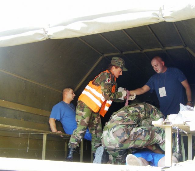 Dnes si rota bojového zabezpečenia preverila svoje vedomosti a zručnosti pri poskytovaní prvej pomoci v prípade vážnej dopravnej nehody s hrozbou ekologickej katastrofy. Zrazilo sa nákladné vojenské motorové vozidlo s cisternou prevážajúcou nebezpečné horľavé látky. Pri záchrannej akcii boli použité ďalšie technické prostriedky roty (2 x TATRA 815, UAZ-469), a ako sprievodné vozidlo slúžil ALIGÁTOR 4x4. Prevážali 42 zúčastnených vojakov a techniku nápomocnú pri odstraňovaní dôsledkov nehody, ktorá patrí medzi povinnú výbavu týchto vozidiel Medzi najzásadnejšie činnosti pomáhajúcej jednotky patrilo zabezpečenie miesta nehody v dostatočnom okruhu, aby neboli ohrození iní účastníci cestnej premávky, preskúmanie rizík a odvrátenie možnosti výbuchu prevážanej látky, a následné ošetrenie zranených. Kládol sa dôraz na správnu činnosť zdravotníckeho personálu, ktorý je súčasťou roty.
