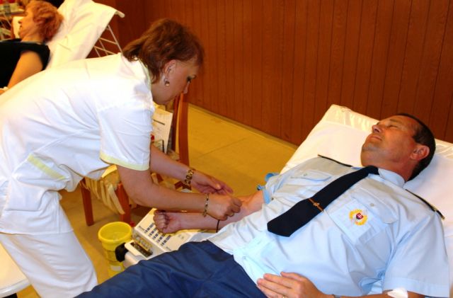 Rovnako to bolo aj dnes 19. júna, kedy zdravotníci z mobilnej transfúznej jednotky, pod vedením primára Oddelenia hematológie a transfúziológie ÚVN z Ružomberka MUDr. Juraja Mituru, urobili ambulantný odber krvi. Tento nenahraditeľný orgán v tekutom stave dnes prišlo darovať asi 50 zamestnancov ministerstva obrany a ozbrojených síl SR.