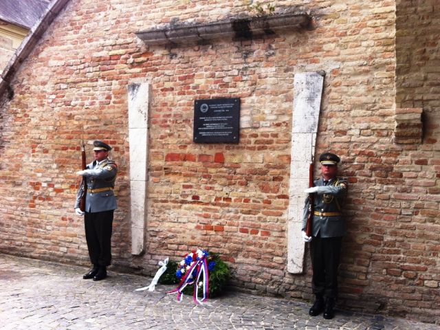 Pri Leopoldovskej bráne pevnosti v Komárne sa v sobotu 23. júna uskutočnil pietny akt kladenia vencov k pamätnej tabuli, venovanej príslušníkom Vojenských táborov nútených prác – Pomocných technických práporov.