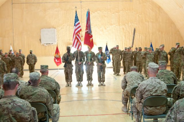 Odchádzajúci velitež CJTF, podplukovník US Army Charles Phillips odovzdal archu zodpovednosti za mnohonárodný tím pôsobiaci v CJTF svojmu kolegovi podplukovníkovi Frankovi Davisovi.