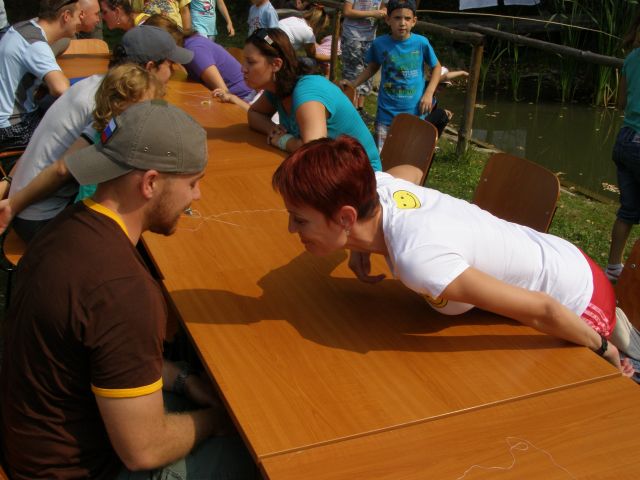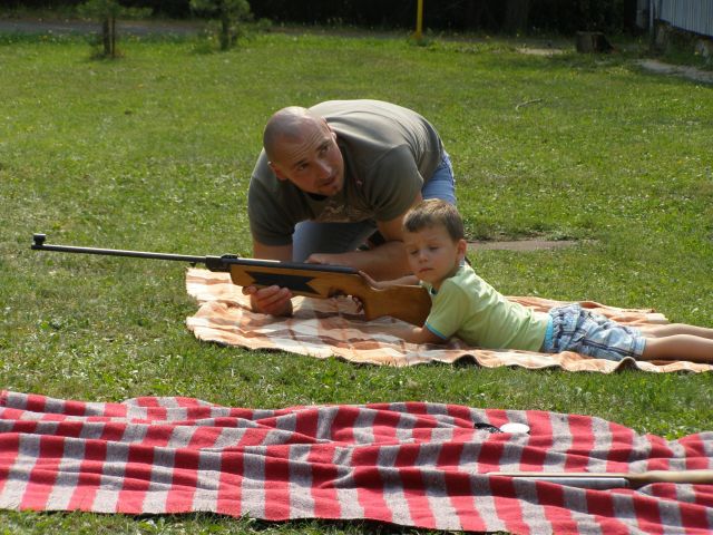 V tento deň sa profesionálni vojaci so svojimi rodinami stretli na strelnici a cvičisku Ruská Nová Ves, aby spolu strávili niekoľko hodín pri smiechu, zábave a priateľskom posedení. Aj keď pri príchode pohľady a úsmevy boli ešte nesmelé, veľmi rýchlo sa to zmenilo. Dopomohlo tomu aj predstavenie rodín mladšími členmi. Tak sme sa čo to dozvedeli o našich vojakoch a ich rodinách. Pokračovali sme rozdelení do skupín v súťažení. Pripravená bola vedomostná disciplína pod dohľadom Nataši Dujavovej. Ak sa niekedy pýtate, čo to z našich detí rastie, potom zo skúsenosti v tejto disciplíne musíme potvrdiť, že to budú riadni mudrci. Nemenej náročnou disciplínou bol slalom s lyžicou plnou vody. A asi najviac smiechu bolo počuť zo stanovišťa vodného volejbalu. Zvláštne je, prečo najmokrejšia skončila Gabika Tőrőková, ktorá na túto súťažnú disciplínu dozerala. Aby sme rodičom nezostali nič dlžní, museli tiež ukázať svoje schopnosti. Ich úlohou bolo bez pomoci rúk čo najrýchlejšie dostať do úst cukrík na niti a odmenou pre nich bol nádherný bozk. Detičky sme tiež potrápili. Ako dobre poznajú svojich rodičov? So šatkou zaviazanou cez oči, len hmatom, museli spoznať tú svoju maminu či tatina.