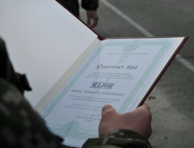 Nástup pokračoval slávnostným aktom pasovania profesionálnych vojakov do vyšších hodností. Je to symbolický akt, kedy veliteľ brigády mečom a vymenením hodnostných označení   pasuje do vyšších hodností a zároveň víta profesionálnych vojakov v mene všetkých príslušníkov 1.mb v radoch príslušnej hodnosti. Takto boli v posádke Topoľčany povýšení major Štefan Szilvási, kapitán Vladimír Pančík, nadrotmajster Pavol Kubis a rotmajster Pavol Fúska.