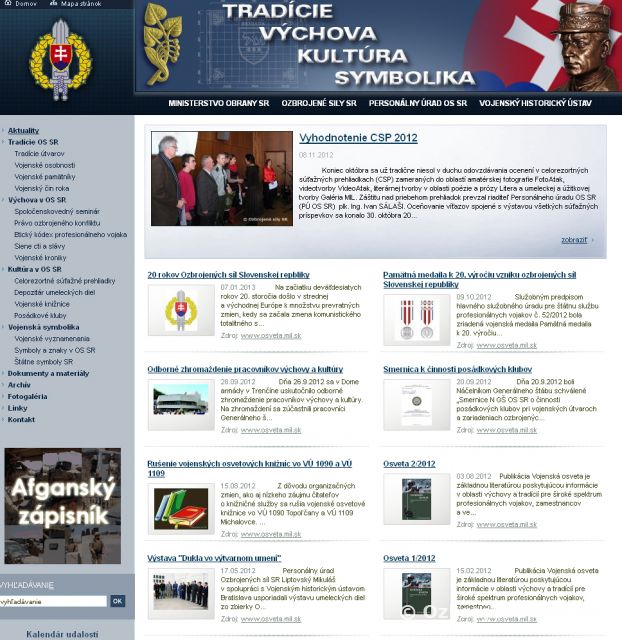 Stránku prevádzkuje Personálny úrad OS SR, Oddelenie výchovných a kultúrnych činností.