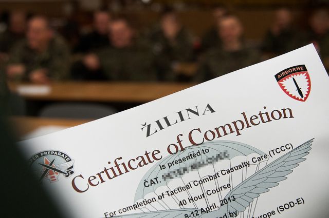 Druhý aprílový týždeň roku 2013 patril v 5. pluku špeciálneho určenia ďalšej z mnohých sekvencí prípravy príslušníkov pluku na očakávané nasadenie SOTG (Special Operations Task Group – Účelové zoskupenie špeciálnych síl) v operácii ISAF v Afganistane. Svoje spôsobilosti rozvíjali v tzv. Tactical Combat Casualty Care Training-u (TCCC) v spolupráci s US SOF tímom zo Special Operations Detachment Europe (SOD-E). Edukačný tím z partnerskej americkej strany bol zložený z lekára, asistenta lekára a troch medikov a školil tridsiatich frekventantov zo žilinského pluku.