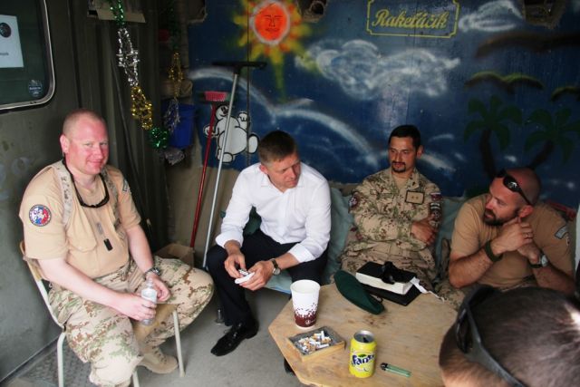 Premiér s ministrom sa v tábore slovenského kontingentu stretli aj s ďalšími slovenskými vojakmi. Spoločne im vyjadrili sústrasť so stratou kolegu a povzbudili ich k ďalšiemu pôsobeniu vo vojenskej operácii.