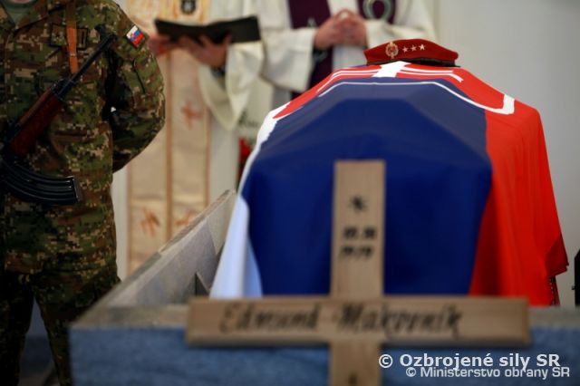 Náčelník Generálneho štábu Ozbrojených síl SR genpor. Peter Vojtek dnes počas poslednej rozlúčky prečítal rozkaz ministra obrany o povýšení Edmunda Makovníka in memoriam do hodnosti kapitán.