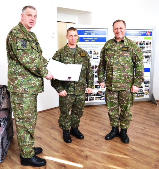 Majstrovi Európy v kulturistike do 70 kg čatárovi Miroslavovi Škadrovi pogratuloval za prítomnosti veliteľa Pozemných síl OS SR brigádneho generála Ondřeja Novosada veliteľ topoľčianskej brigády plukovník gšt. Ján Bujňák. Gratuláciu k zlatému umiestneniu počas minuloročnej májovej súťaži Majstrovstiev Európy v kulturistike mužov v moldavskom Kišineve, v najväčšej svetovej kulturistickej federácií IFBB.