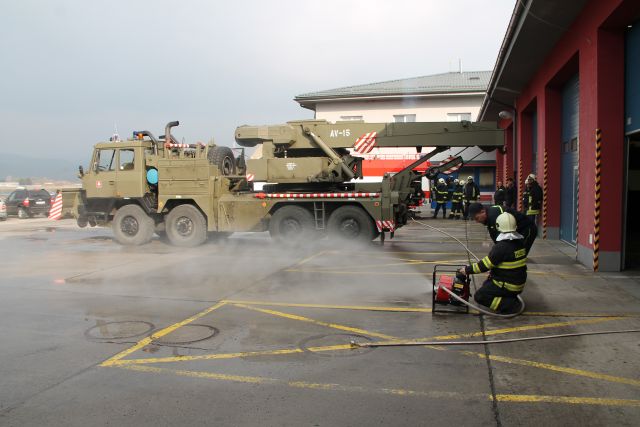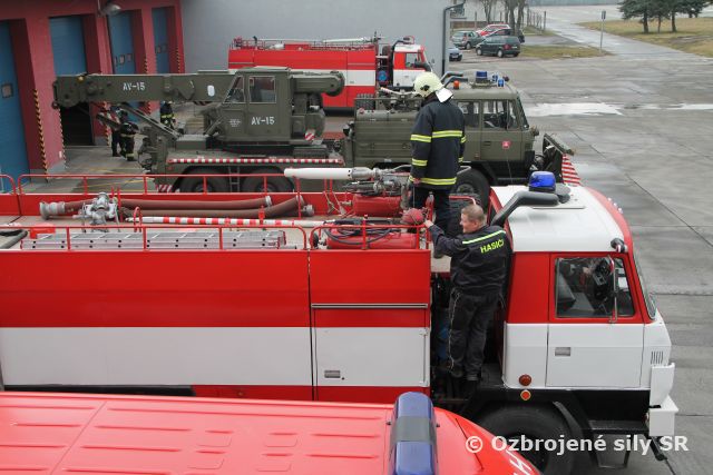 V posledný februárový deň sa uskutočnil súčinnostný výcvik vojenskej hasičskej jednotky zmiešaného krídla Sliač a hasičskej záchrannej služby Letiska Sliač a. s. Témou výcviku bolo oboznámenie sa s technickými a vecnými prostriedkami hasičských jednotiek, ktorými obidve jednotky disponujú.