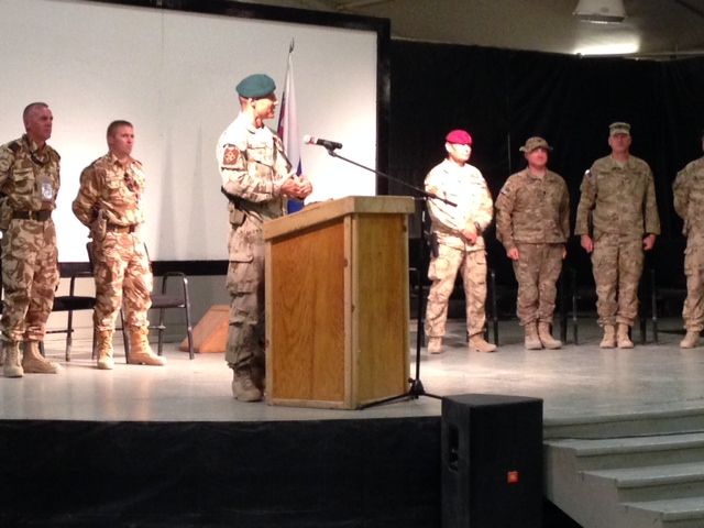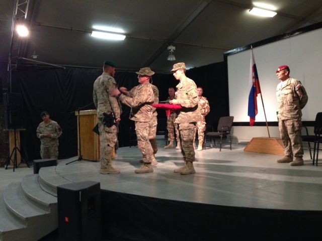 „Ďakujem Vám za vašu obetavú prácu vojaci. Ako prvá slovenská poradenská jednotka v Afganistane ste to nemali vôbec ľahké. Všetky úlohy ste však zvládli a pomohli tak afganským vojakom lepšie slúžiť svojej krajine. Verím tomu, že to čo ste ich naučili, im raz môže zachrániť život,“ zdôraznil plukovník Bohuš vo svojom príhovore. Po slovenskom veliteľovi si vzal slovo americký podplukovník Voorhies. „Aj ja Vám všetkým ďakujem za vašu príkladnú službu. Počas mojej kariéry som mal prvý krát možnosť pracovať so slovenskými vojakmi a musím uznať, že som sa od Vás veľa naučil. Je neuveriteľné, aký vzťah ste si s afganskými vojakmi vytvorili. Len vďaka Vám sme boli takí úspešní v spoločných operáciách. Želám Vám šťastný návrat domov k rodinám a verte, že na Vás nikdy nezabudnem.“