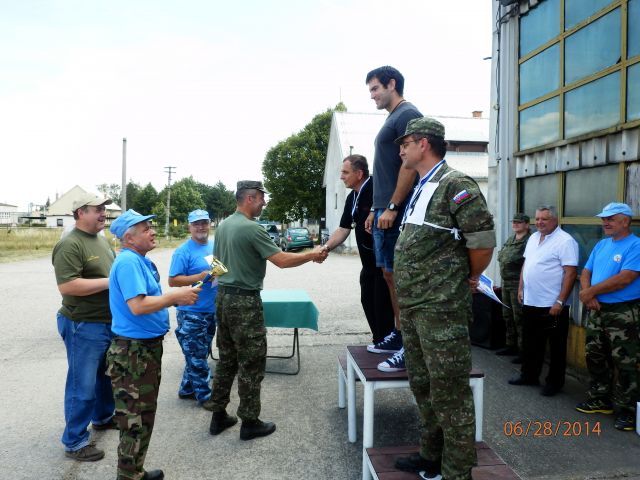 II. ročník streleckej súťaže v streľbe z pištole pri príležitosti Medzinárodného dňa príslušníkov mierových síl OSN Pri príležitosti Medzinárodného dňa príslušníkov mierových síl OSN Ženijný prápor Pozemných síl OS SR a Občianske združenie UN Veteran Slovakia, v spolupráci so Zväzom vojakov SR klub Sereď, zorganizovali dňa 28. júna 2014 v areáli pechotnej strelnice žpr PS v Seredi II. ročník streleckej súťaže. Pri slávnostnom otvorení súťaže sa slova ujal prezident UN VETERÁN SLOVAKIA plukovník v.v. Štefan Jangl a veliteľ Ženijného práporu PS OS SR v Seredi podplukovník Dalibor Jelínek. Súťaž bola zorganizovaná v zmysle právnych predpisov a v súlade s BOZP,o čo sa postaral riadiaci zamestnania nadporučík Marek Vlnka z roty podpory velenia. Spoločne s ním sa na zabezpečení a hladkom priebehu súťaže podieľali vybraní profesionálni vojaci zo Ženijného práporu Pozemných síl OS SR plniaci podporné úlohy. Na súťaži sa celkovo zúčastnilo šestnásť družstiev, z ktorých víťazným sa stalo družstvo z veliteľstva 1.mb v Topoľčanoch. O druhé a tretie miesto úspešne bojovali naši vojaci zo Ženijného práporu. Z jednotlivcov sa najlepšie umiestnil Ing. Juraj Lopašovský z Okresného riaditeľstva PZ SR v Galante. Najlepšie družstvá a strelci boli ocenení pohárom a medailou. Na záver vyhodnotenia streleckej súťaže plukovník v.v. Dušan Juhász, vedúci oddelenia starostlivosti o vojenských veteránov a dôchodcov ministerstva obrany odovzdal odznak veterána plukovníkovi v.v. Miroslavovi Klimekovi, podplukovníkovi. v.v. Ľubomírovi Mičátkovi, podplukovníkovi v.v. Ondrejovi Urbanovi a majorovi v.v. Ivovi Křemekovi. Okrem súťaže sa vynikajúco darilo aj nášmu kuchárovi slobodníkovi Michalovi Kankovi pri príprave UN guľášu, ktorý chutil všetkým zúčastneným. Celé strelecké podujatie tohto II. ročníka sa nieslo v príjemnej atmosfére a správnej športovej rivalite. Po skončení si súťažiaci posedeli pri guláši v družnej debate medzi priateľmi.