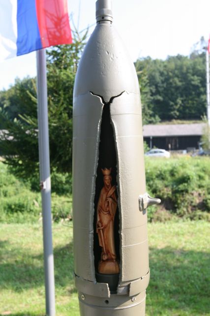 Spokojný bol aj iniciátor celej akcie kapitán Peter Bezdek z Národného centra EOD Nováky. Veď celý pamätník, symbolizujúci činnosť špecialistov EOD je osadený na kameni. Predstavuje ho letecká bomba OFAB. V otvore po výbuchu je umiestnená drevená soška Svätej Barbory. „Cítili sme povinnosť aj takýmto spôsobom si uctiť prácu špecialistov EOD, všetkých pyrotechnikov, ktorú vykonali od vzniku slovenských ozbrojených síl doma i vo svete. Veď práve v zahraničných operáciách a misiách šírili dobré meno Slovenska a jeho ozbrojených síl. Či už to bolo pod vlajkou OSN či NATO“, zdôrazňuje kapitán Bezdek.