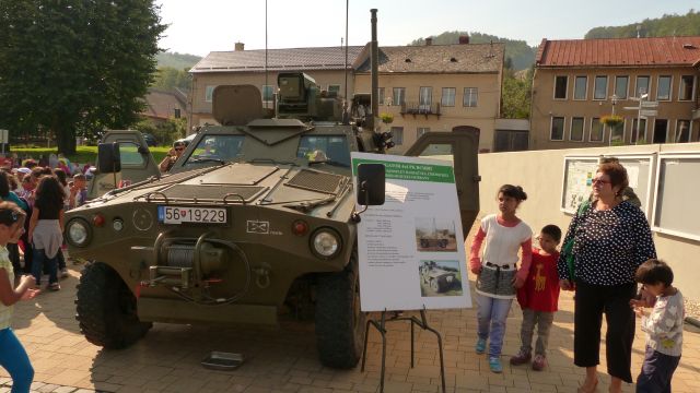 Oslavy 70. výročia SNP v meste Dobšiná vyvrcholili ukážkami špeciálnej vojenskej techniky prrchbo (prieskumný komplet aligátor 4x4 RCHBO a dekontaminačné vozidlo DEKVOZ) a rmo (raketomet MODULÁR).