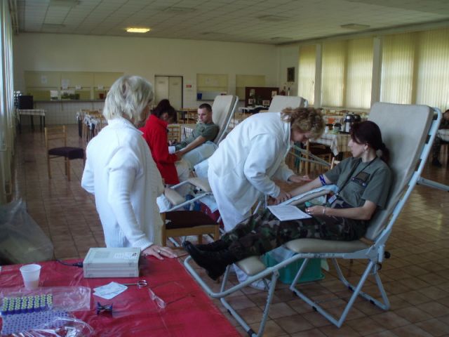 Už od roku 2007 sa na útvare 3030 Zvolen pravidelne koná darovanie krvi v spolupráci s NTS z Banskej Bystrice. Spočiatku boli reakcie našich PrV a zamestnancov opatrné, ale časom zistili že nie je čoho sa báť. Príjemný personál a vedomie, že krv je potrebná stále, rozptýlili posledné pochybnosti. Aj keď sa to v niektorých prípadoch nezaobišlo bez menších nevoľností, v špeciálnych lehátkach sa leží celkom príjemne a usmiate sestričky z NTS v spolupráci s obväziskom všetko hravo zvládli. Na našom poslednom darovaní 20.4.2009 sa zúčastnilo 30 ľudí. Pevne veríme že ich počet sa bude z odberu na odber zvyšovať a tým prispejú na záchranu mnohých životov. Ďakujeme Vám milý darcovia!