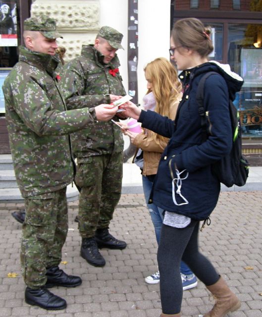 Tak, ako v minulom roku, keď rozdávali príslušníci 2. mechanizovanej brigády vlčie   maky v meste Košice, aj tento rok pomáhali vojaci prešovskej brigády tento významný deň,   11. november - Deň vojnových veteránov,   podporiť. Na Hlavnej ulici v krajskom meste Prešov objasňovali význam tohto sviatku okoloidúcim chodcom a zároveň im pripínali  červené kvety - symbol tohto dňa, na chlopne kabátov.