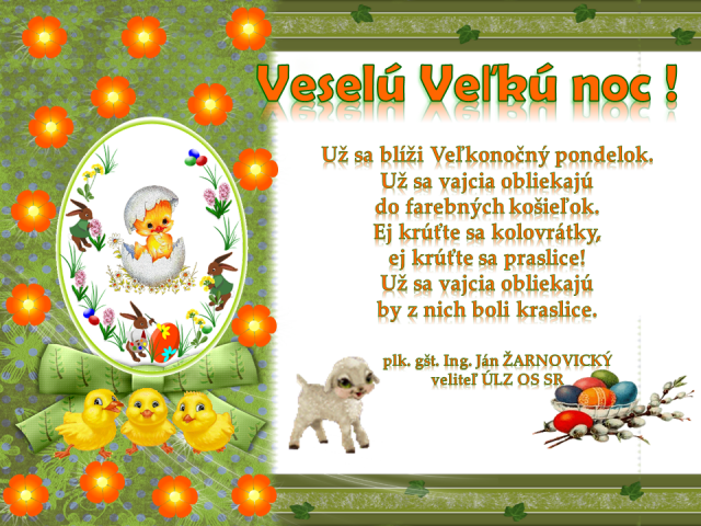 Blahoželanie veliteľa Úradu logistického zabezpečenia OS SR k veľkonočným sviatkom