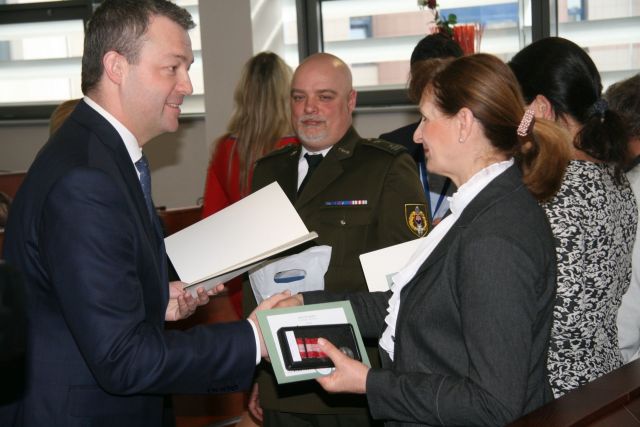 V priestoroch kongresovej sály Trenčianskeho samosprávneho kraja ocenili 14. apríla účastníkov národného boja za oslobodenie z regiónu. Patria medzi 1715 účastníkov odboja, ktorým minister obrany udelil Pamätnú medailu k 70. výročiu Slovenského národného povstania a ukončenia druhej svetovej vojny.