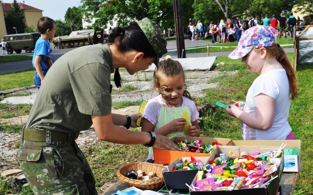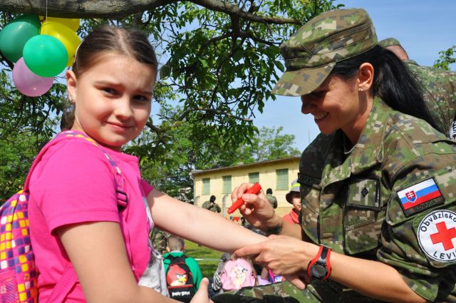 Na najmladších návštevníkov čakalo mnoho atrakcií a pre veľký úspech z vlaňajšieho roka sa očakával zvýšený záujem v tomto roku, čo sa aj potvrdilo už v spomínanej účasti. Okrem statických ukážok rôznych zbraní a techniky, vojenskej prekážkovej dráhy, maľovania na tvár, ukážok sebaobrany a možnosti vyskúšať preskúmať objekt v pripravenom stane pomocou nočného videnia, pribudli tento rok aj dva skákacie hrady, psovodi so psami z Justičnej a Väzenskej stráže, hasičské vozidlo s celou posádkou z HaZZ z Levíc a v rámci ukážok prvej pomoci asistovali dobrovoľníčky Červeného kríža.