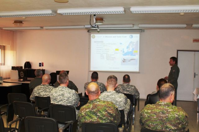 Brigádny generál Korba v krátkosti oboznámil delegáciu s cieľmi, úlohami a ďalším smerovaním Vzdušných síl OS SR formou multimediálnej prezentácie.