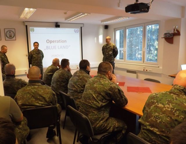 V nadväznosti na CAX bolo dňa 26.11.2015 vykonané záverečné cvičenie Blue Land 2015 v priestore posádky Martin s cieľom preveriť vedomosti z oblasti plnenia špecifických úloh v nárazníkovej zóne ako pozorovanie, hliadkovanie, vyjednávanie, komunikácia s civilným obyvateľstvom a komplexná reakcia na vzniknuté incidenty a narušenia v súlade s platnými postupmi v mierovej operácii UNFICYP. Obe cvičenia boli realizované v anglickom jazyku. Vybrané pozície kľúčového personálu UNFICYP sa v dňoch 25.-26.11.2015 pripravovali individuálne na základe pokynov k spracovaniu projektov podľa funkčných náplní v priestore pôsobenia.