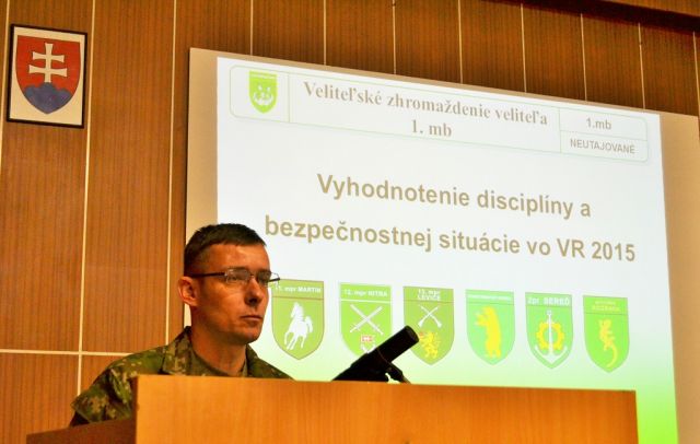 Pozvanie na veliteľské zhromaždenie prijal zástupca veliteľa Pozemných síl OS SR brigádny generál Juraj Krištofovič. V hlavnej časti programu za prítomnosti hosťa veliteľ prvej brigády vyhodnotil splnenie cieľov a rozhodujúcich úloh plnených brigádou v predchádzajúcom výcvikovom roku 2015. Vo svojom vystúpení brigádny generál Kubáň zdôraznil, že: „dnešné vyhodnotenie výcvikového roka 2015 je symbolickým ukončením jednej etapy života 1.mb a zároveň vytýčenie smerovania vo výcvikovom roku 2016.“ Ako ďalej uviedol: „všetky úlohy bolo možné splniť len s najvyšším vypätím síl veliteľov na všetkých stupňoch velenia a ich podriadených príslušníkov jednotiek, prijatím krízových a neštandardných opatrení v oblasti personálnej, materiálovej,  technickej ale aj organizačnej“.