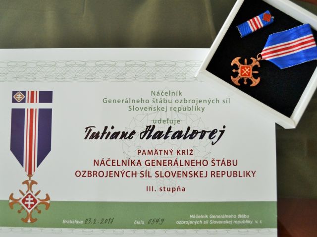 Pri tejto milej udalosti odovzdal veliteľ brigády oslávenkyni Pamätný kríž náčelníka Generálneho štábu OS SR za významnú spoluprácu s OS SR pri príležitosti životného jubilea, ako aj svoj Ďakovný list s vyjadrením poďakovania a želania pevného zdravia, ktoré je v dnešnej uponáhľanej dobe absolútne prioritné, v ďalšom rodinnú pohodu, ktorá vytvára základ pre komfortné fungovanie v civilnom ako aj v našom „zelenom“ prostredí a rovnako tak  veľa osobných a pracovných úspechov do ďalších rokov. Ako symbol vďaky venoval brigádny generál Kubáň jubilantke Táničke kyticu kvetov.