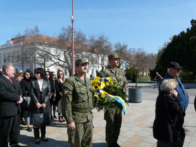 Pri tejto príležitosti veliteľ Práporu logistiky Hlohovec podplukovník Ing. Richard Beniak slávnostne položil vence na pamätníky padlých hrdinov v Piešťanoch a Hlohovci.